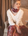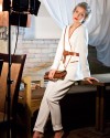 В коллекции предпочтение отдаётся натуральным костюмным тканям: шерсть, кашемир, шёлк и мохеровый трикотаж. Все ткани по заказу привезены из Италии.